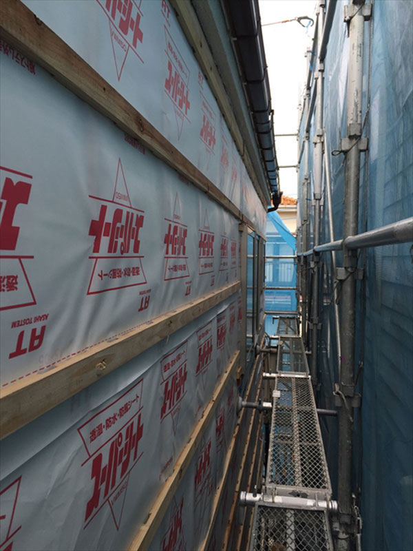 前回、外部は防水紙が張られ、