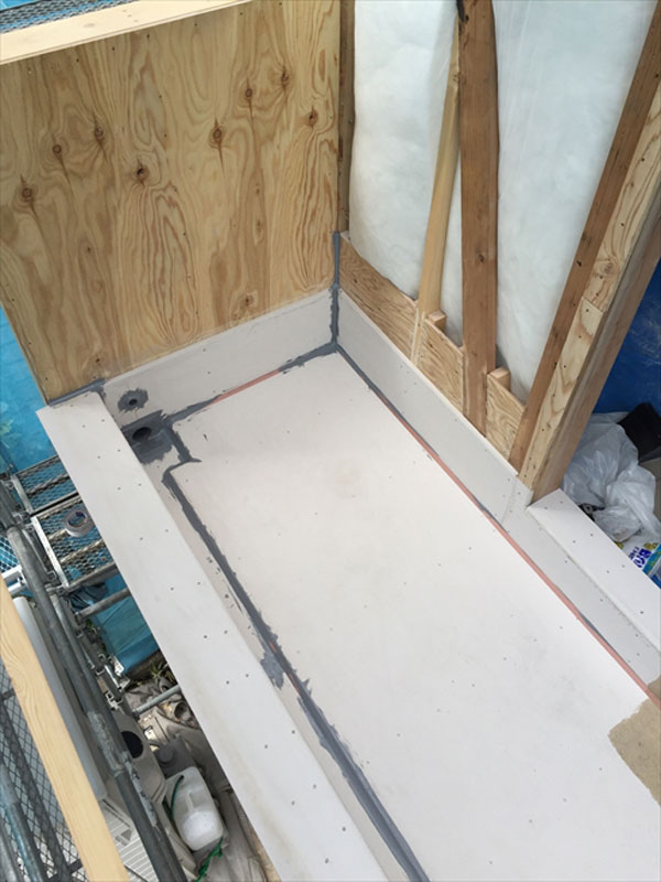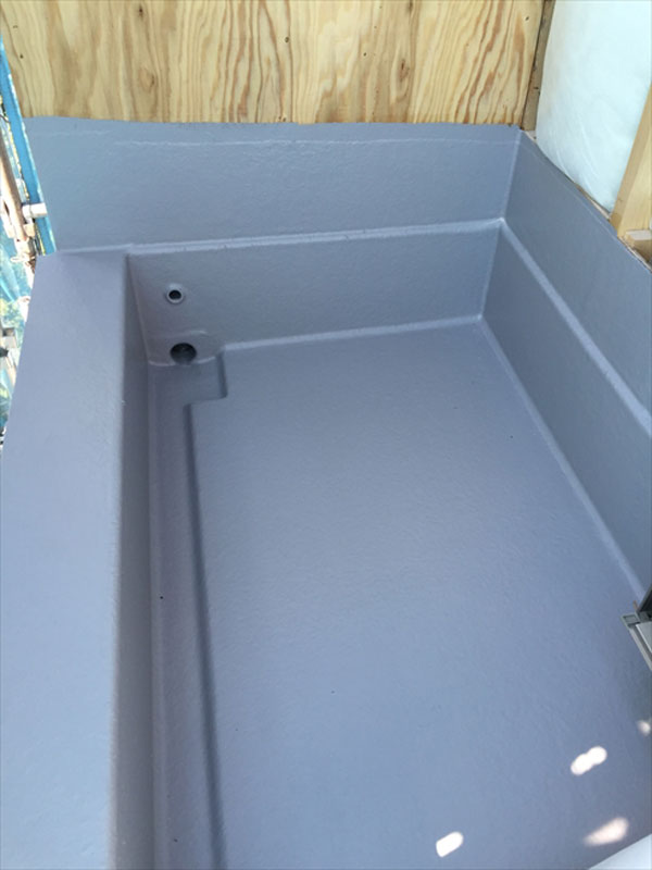 下地のジョイントはコーキング処理を行い、FRP防水を行いました。
