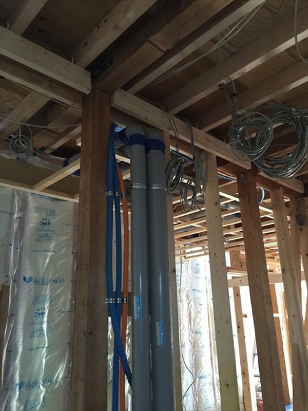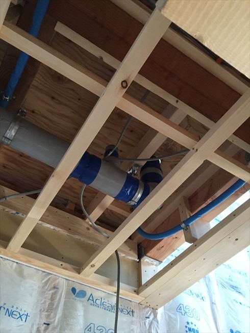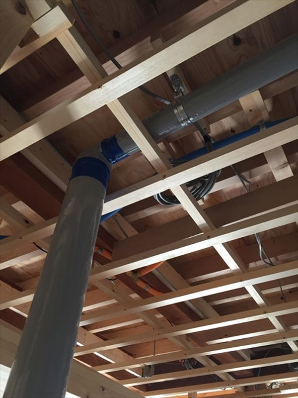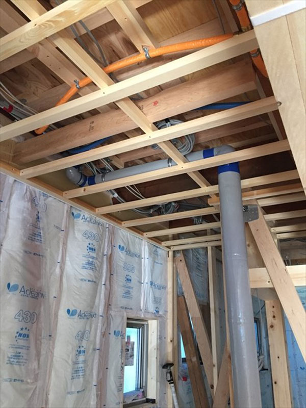 その前に、2階への設備配管を行いました。