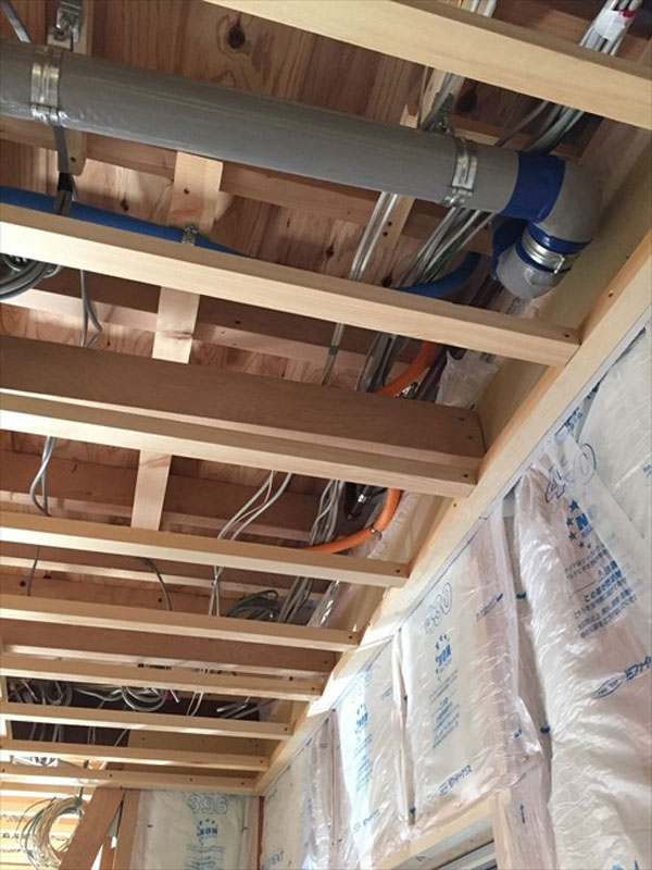壁や天井内に隠れる配管・配線が終了しましたので、