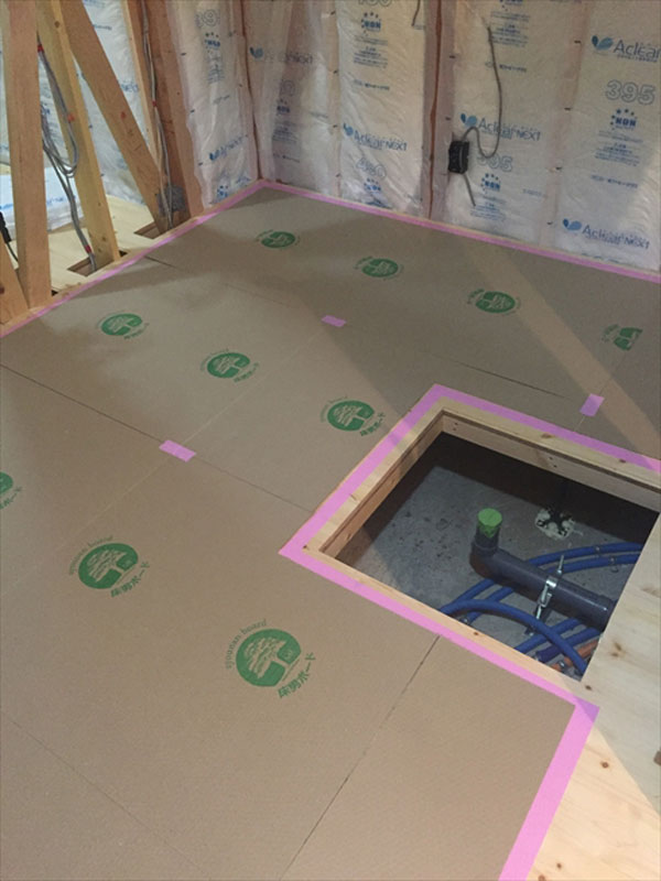 こちらの床は、クッションフロアとタイルで仕上がっていく予定です。