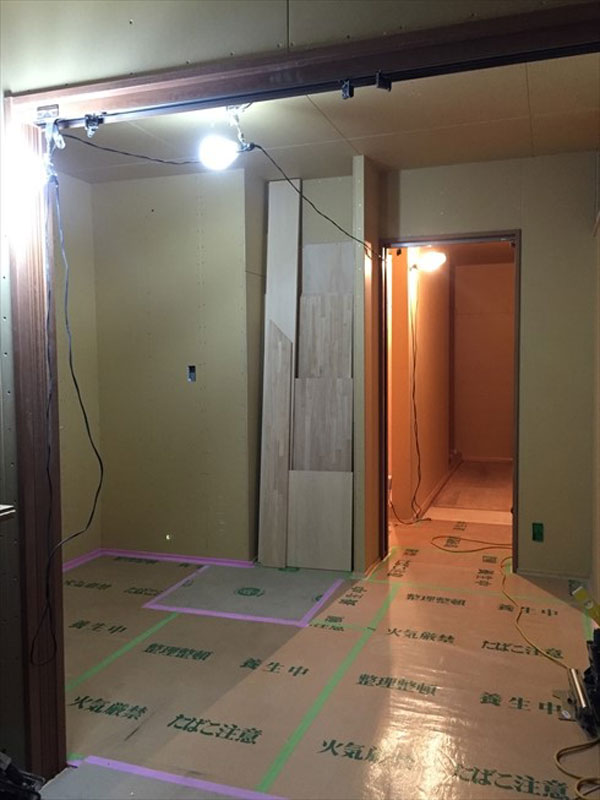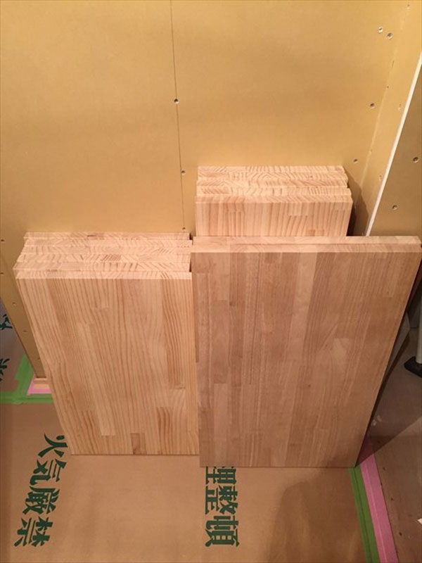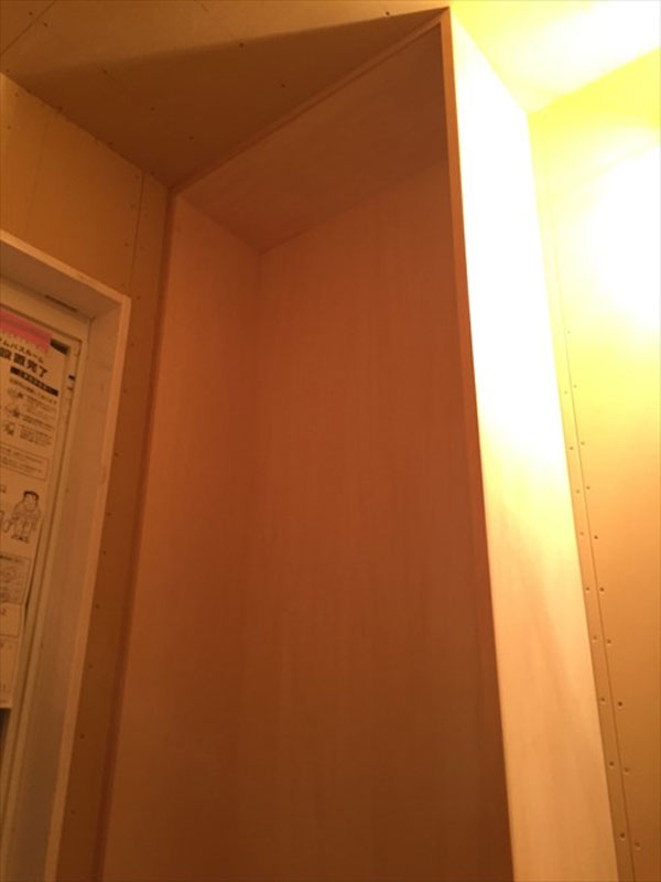 仕上がるまではベニヤの部分も養生をして待ちます。