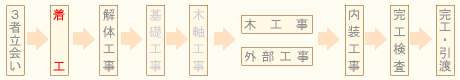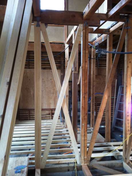 構造体が見えてきたところで筋交い・柱の位置や、土台の傷み等