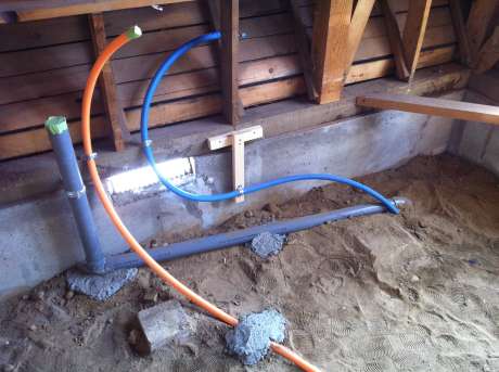 床下の土部分には、防湿フィルム(厚さ0.15mm)を敷きこみ、