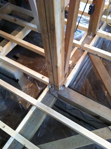 これは現状の床組みを壊して水平を見て、組み直したほうが良いだろう・・・