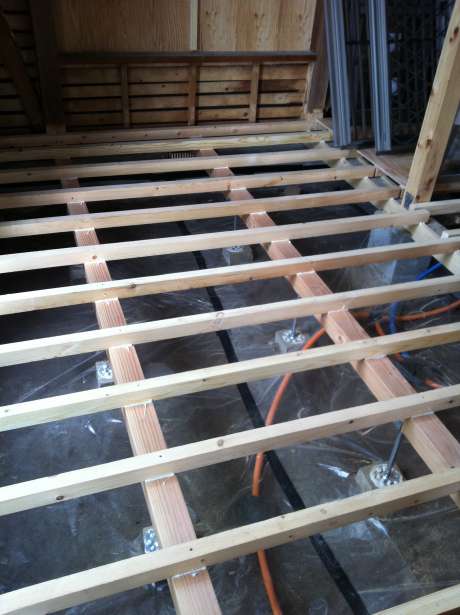 床下地の水平が悪かった2階の元和室も根太がけで高さを調整して