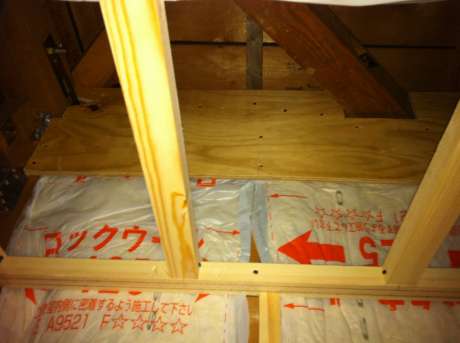 この板張りのままではクロスが貼れない為、上から5.5mmの