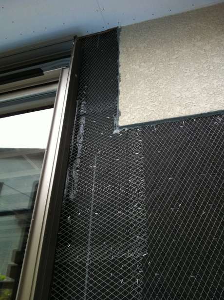 サッシ交換部分は、まわりの外壁モルタルにカッターを入れて
