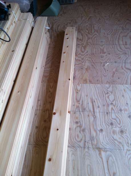 そろそろ、現場には無垢材の建具枠や床材が搬入されてきます。