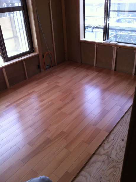 2階の和室は、畳を撤去し畳の厚さ分、高さを上げ(廊下の床にあわせて)
