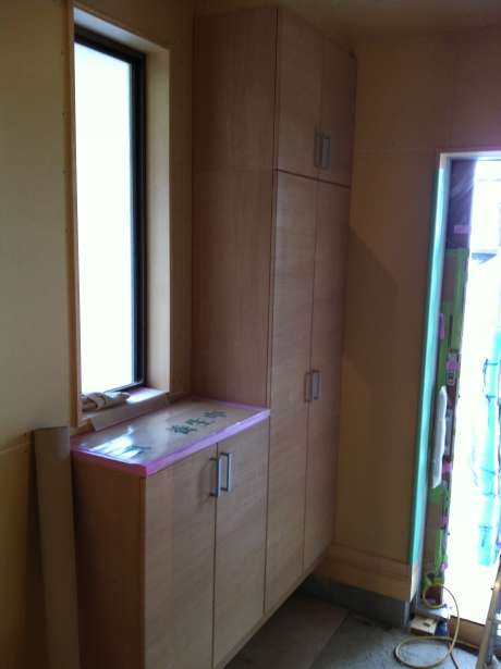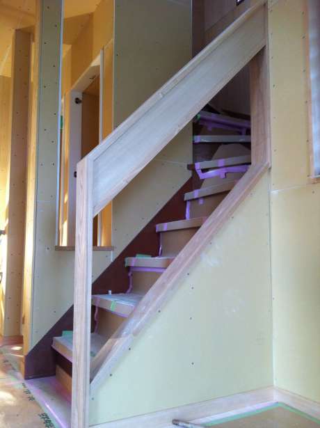 玄関収納(トステム製品)や、タモの無垢材を使った造作の手摺も造られました。