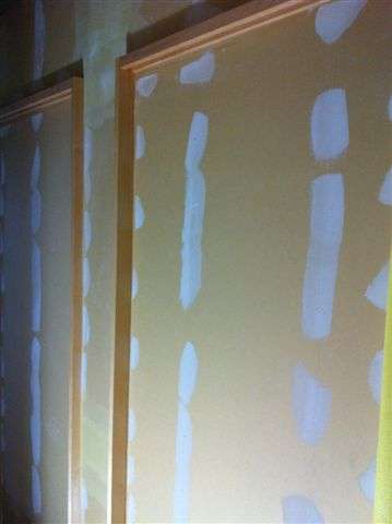 石膏ボードの継ぎ目にファイバーテープを張り、