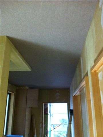 壁に先立ち、天井のクロスを貼り始めました。