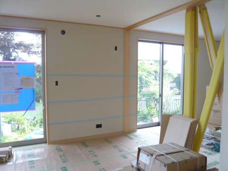 珪藻土が乾燥した後に、造作建具工事、電気器具・設備器具の