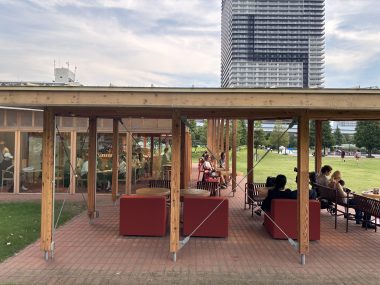 豊洲公園内にある「ブルーボトルコーヒー」。