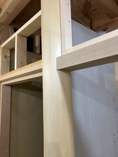収納の開き戸枠などの彫り込みを行います。