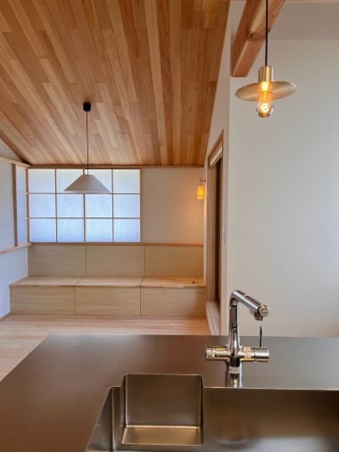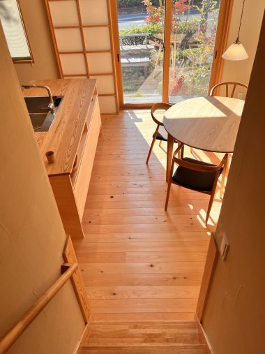 キッチンから望むベンチ後ろの