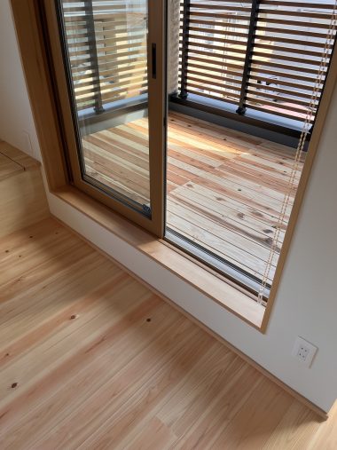 バルコニー床は杉板でスノコをつくり、