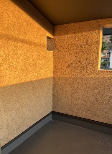 仕上がったばかりのそとん壁を