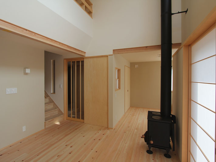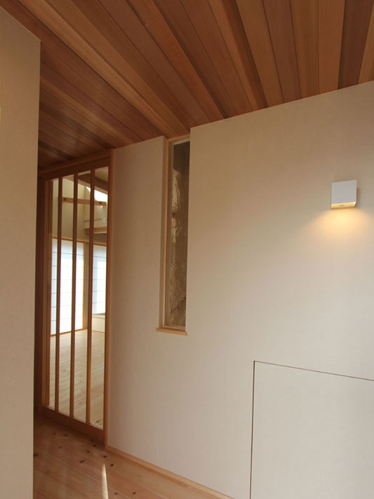 天井は板張り、壁には和紙を貼ってあります。