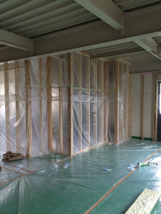 壁と天井の断熱、及び鉄骨の柱の断熱(結露対策)や