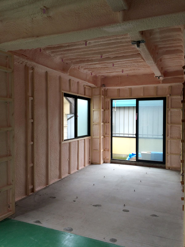 そこで採用したのが発泡ウレタン系の断熱材です。
