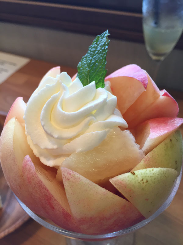 桃1個まるまる使ったゴージャスな桃のパフェが有名。