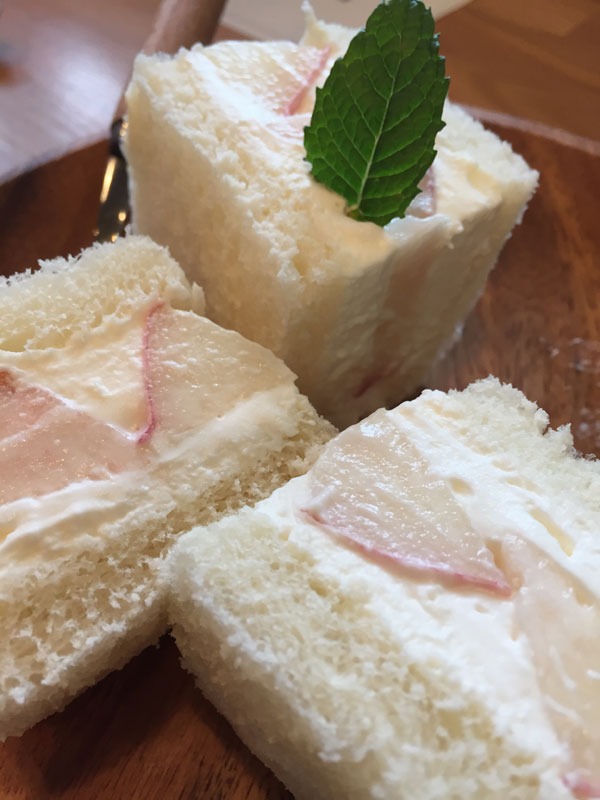 パフェと桃サンドと桃の紅茶と柚子ソーダを注文。