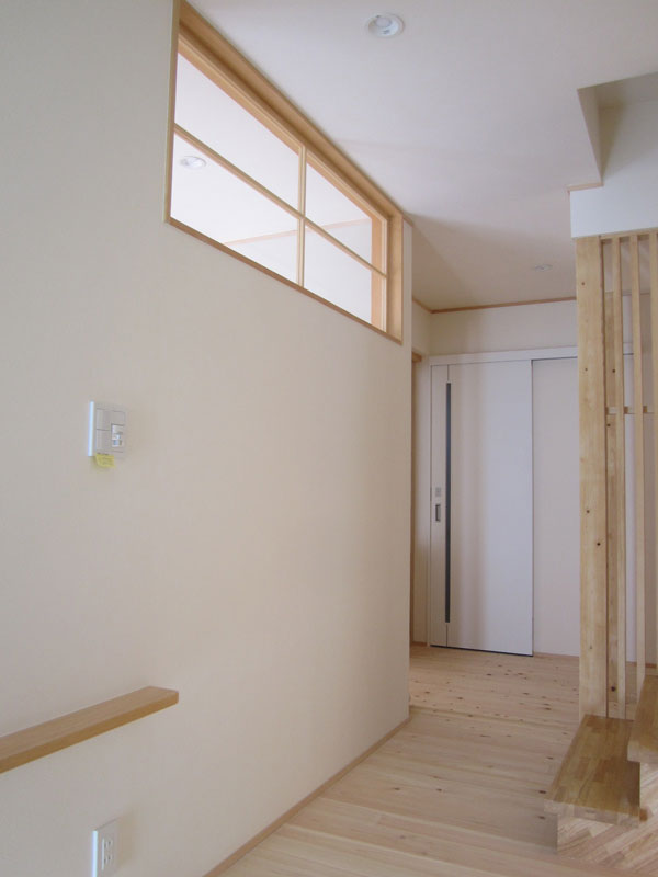 玄関とリビングの間に室内FIX窓を造りました。