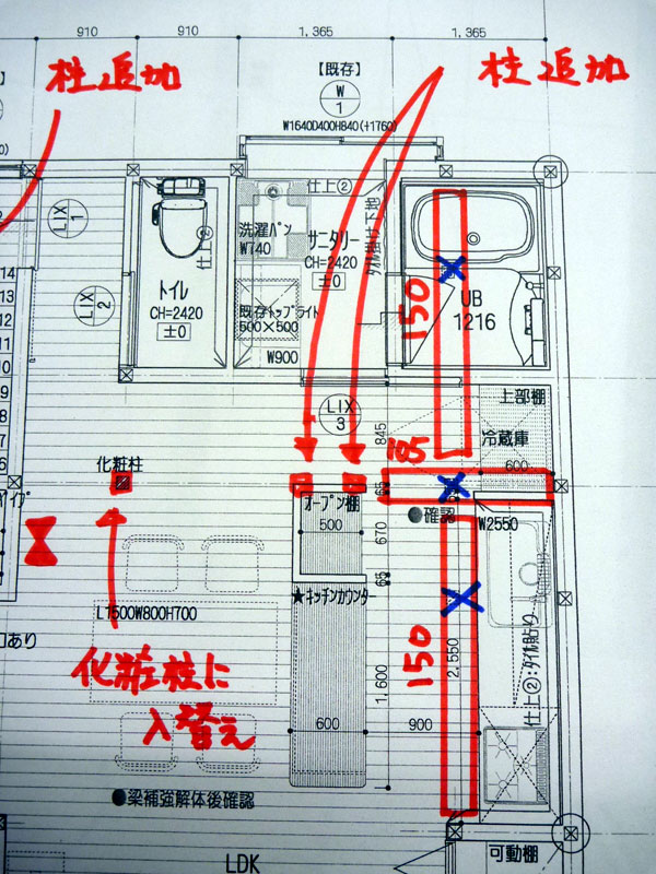 柱を抜く部分もあるので、構造補強が必要となります。