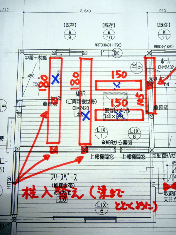 1、 柱を抜くのが難しい箇所は、薄壁にて提案していた壁を