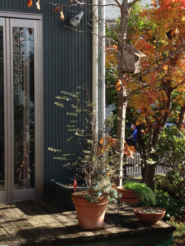 当時のウッドデッキの褪色具合と庭の色づき、冬の空気感が相まって、