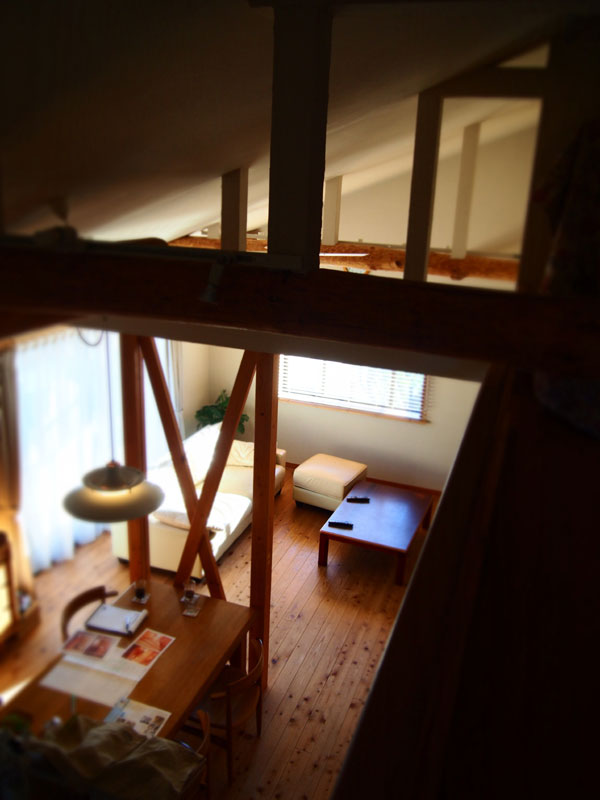 家具や露わにした梁なども色艶に深みが出て