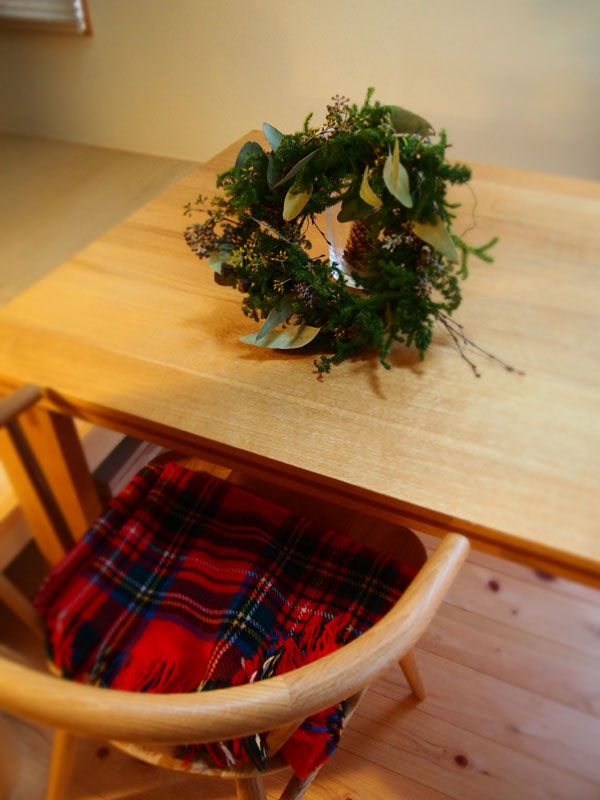 勇気を出して、作ったリースを玄関に。