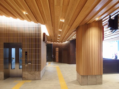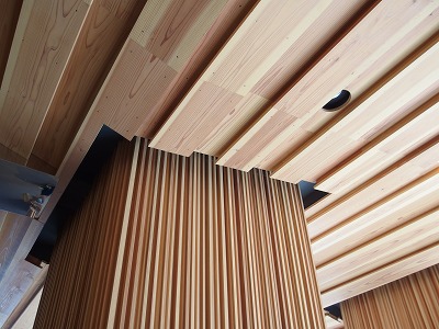 隈さん御得意の不燃処理をした地産杉材を使い、