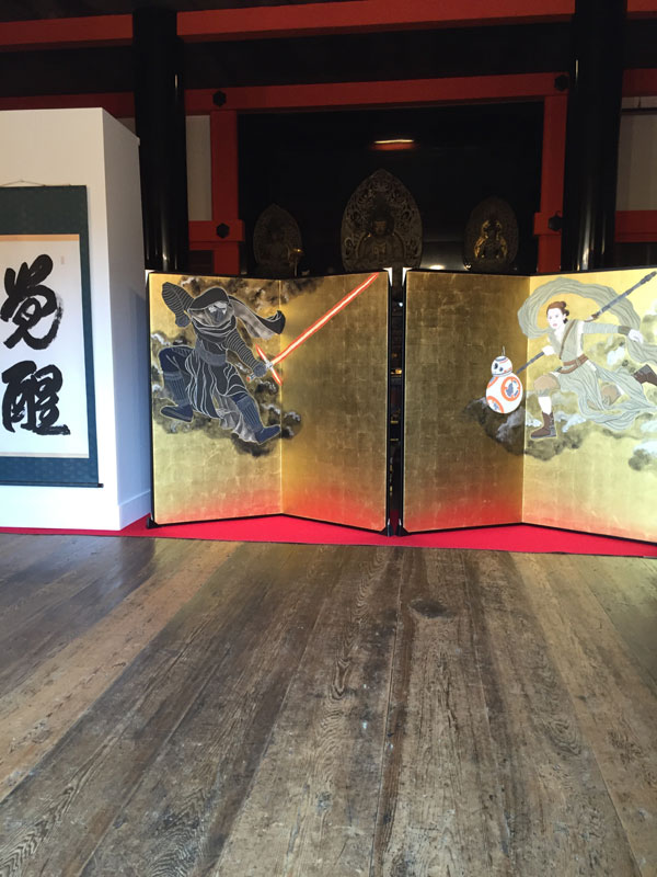 スターウォーズとコラボ展示とのことで、風神雷神風の屏風がありました。
