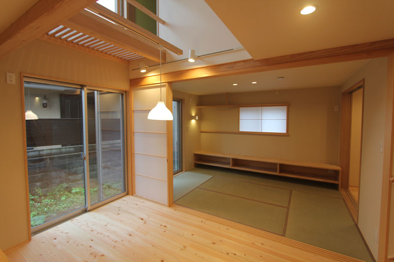 一ヶ所メインの造作建具を計画するだけで、空間の雰囲気や