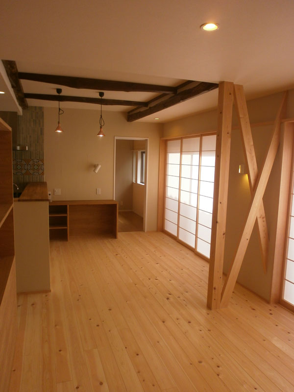 次はダイニングに設けた既存の化粧梁。