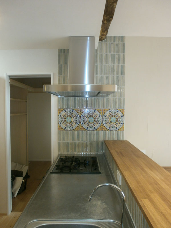 最初の既存利用はキッチンの壁に貼られていたタイル。