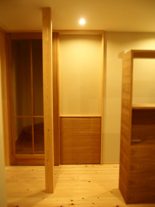 引き戸の引き込み壁もニッチにして、お子様の描いた絵など