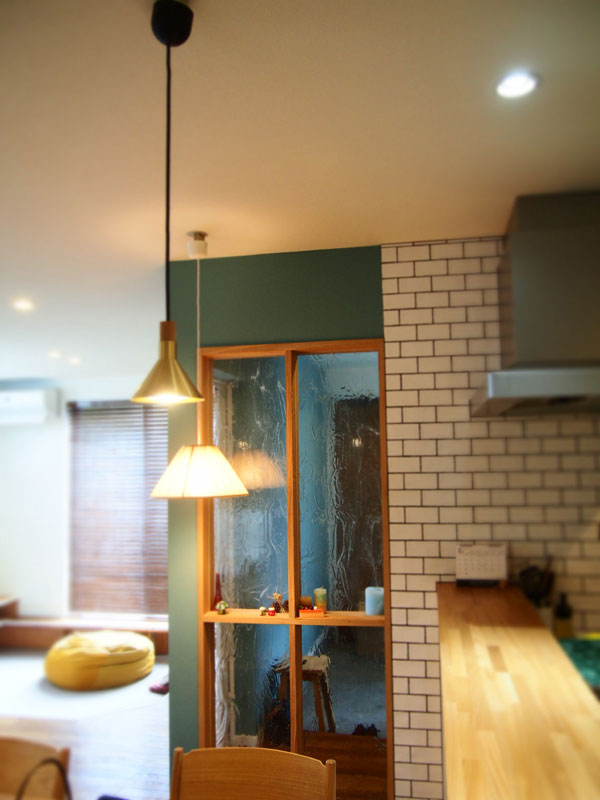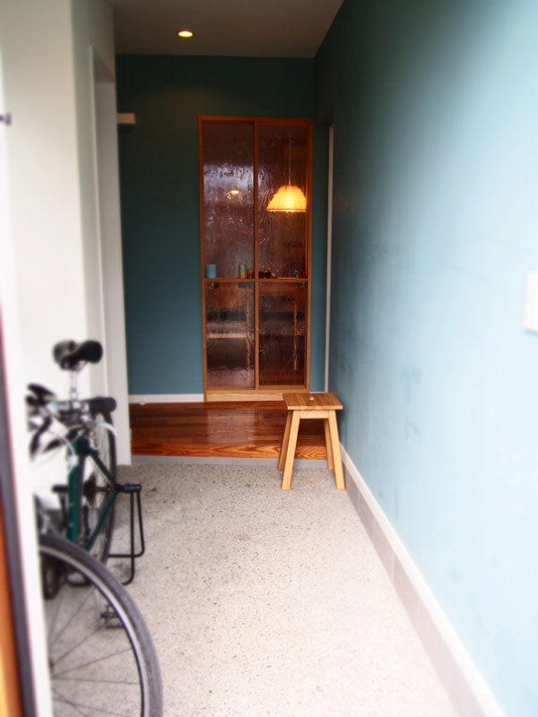 玄関扉を開けるとFixの泡入りガラスの向こうに