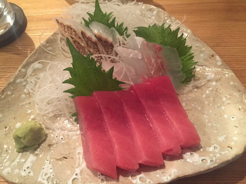 焼霜造りと皮を引いた刺身の2種でいただき、締めには鯛茶漬け、