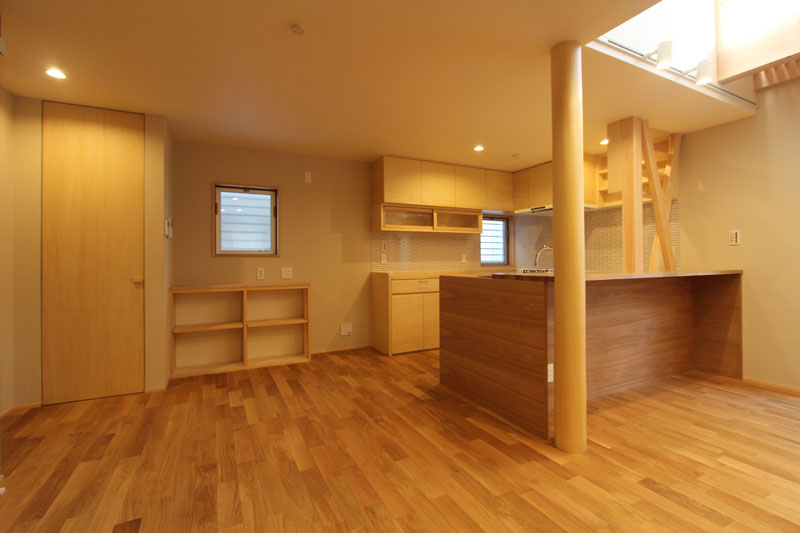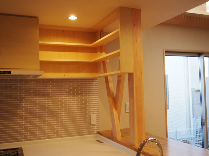 筋交いを見せて、家具工事で飾り棚兼オープンな