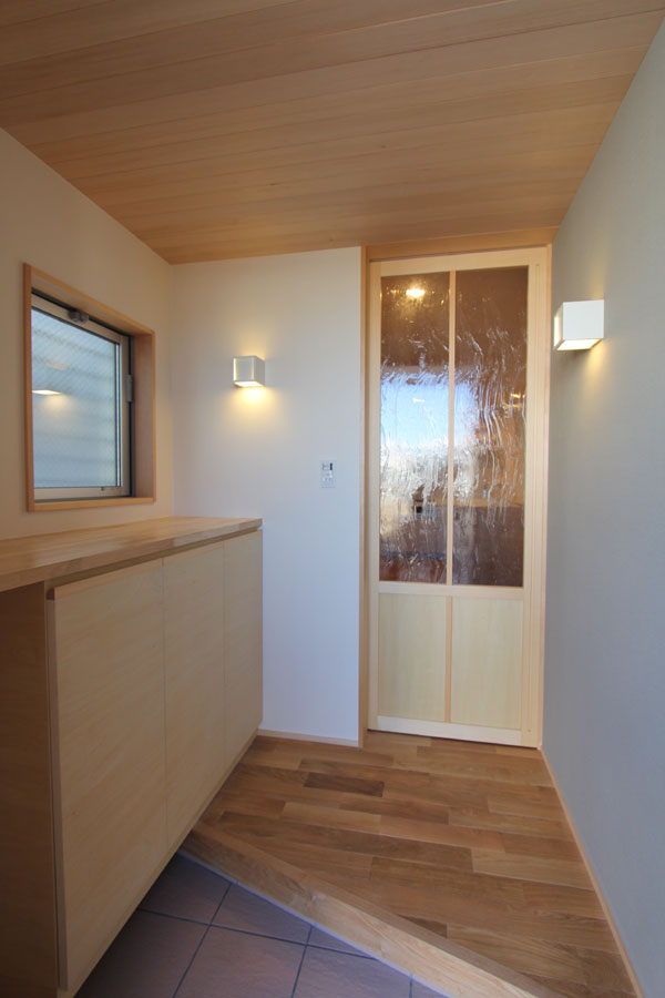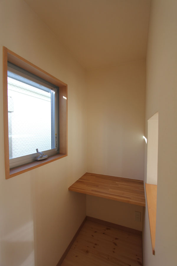 この部屋から直接、ガレージへ出られるよう勝手口も付けました。