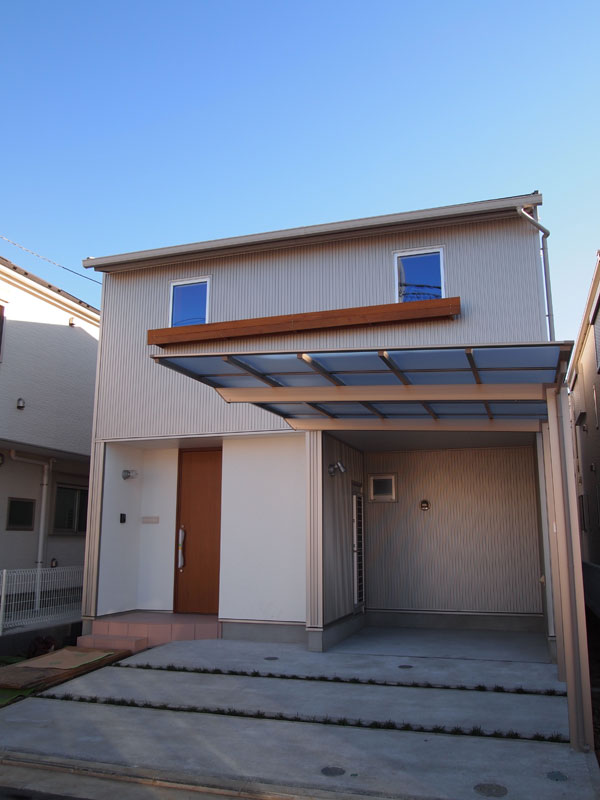 外壁材はガルバリウム鋼板と一部ポーチ周りを
