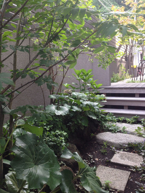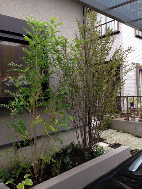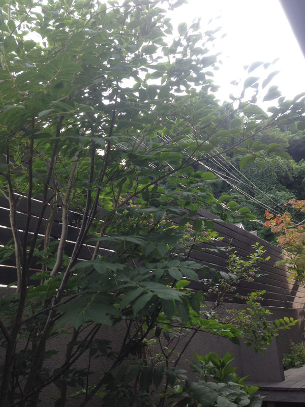 通りからの目隠しを兼ねている樹木たちは、