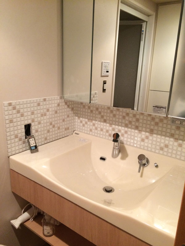 化粧台の壁では、化粧台はメーカー品で、