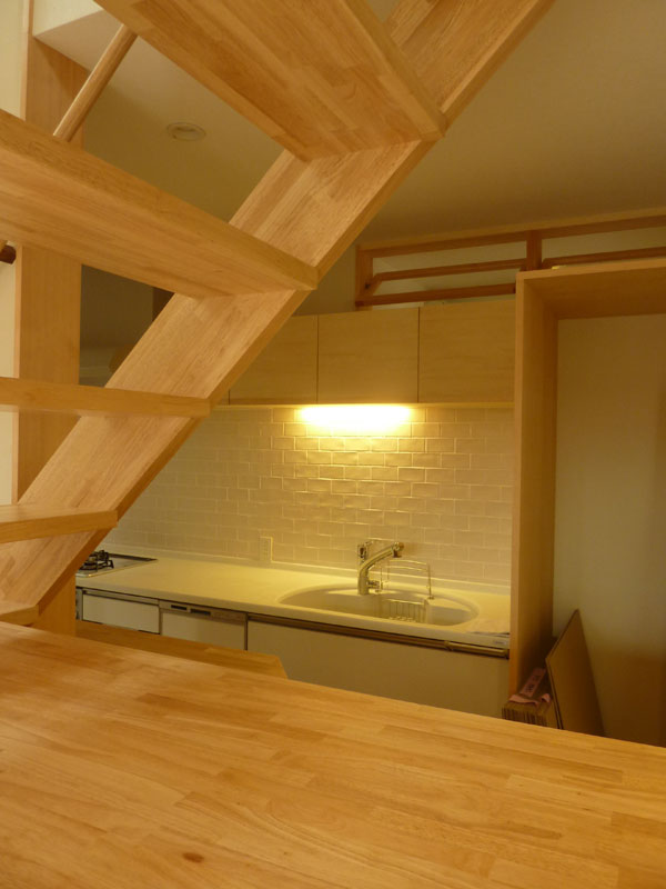 キッチンはリビング側との拡がりを持たせるため吊戸は設けず、