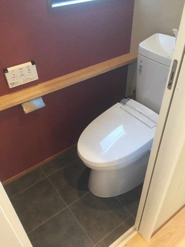 トイレの内装も一面アクセントにした事で