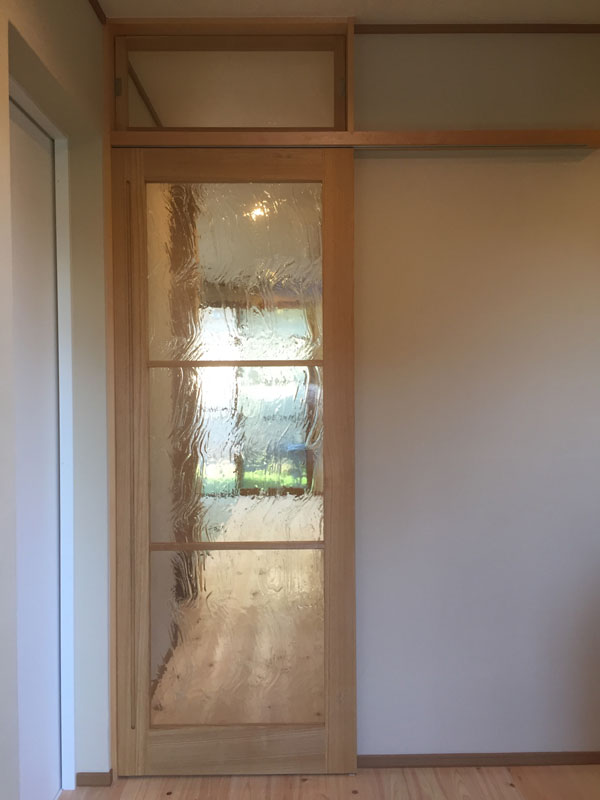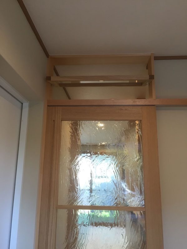 玄関ホールからLDKへの建具は造作とし、上部には欄間も計画しました。